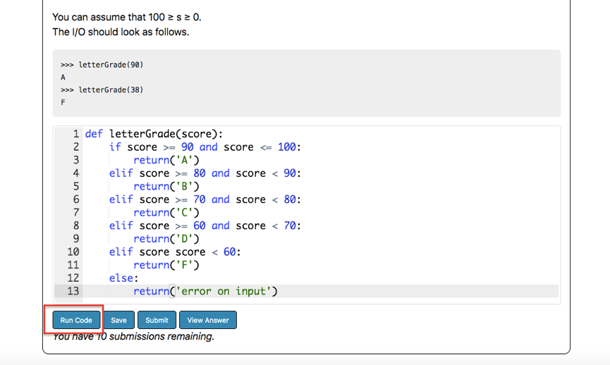 發現有error在code裡面,因此必須修改code,再次按下Run Code。